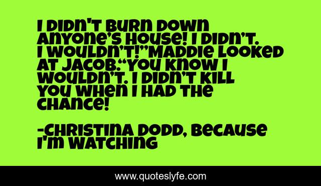"Christina Dodd, Because I'm Watching Quotes." Quoteslyfe.com, 2025. Mon. 08 Dec. 2025. <https://www.quoteslyfe.com/quote/I-didn-t-burn-down-anyone-s-200593>.