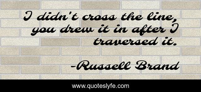 This page presents the quote "I didn't cross the line, you drew it in after I traversed it.". Author of this quote is Russell Brand. This quote is about audacious, wit, humour,.