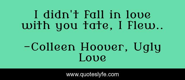 This page presents the quote "I didn't fall in love with you tate, I flew..". Author of this quote is Colleen Hoover, Ugly Love. This quote is about heartbreak, love, affection, happily-ever-after,.