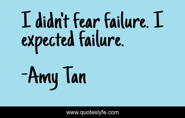 This page presents the quote "I didn't fear failure. I expected failure.". Author of this quote is Amy Tan. This quote is about expected, fear,.