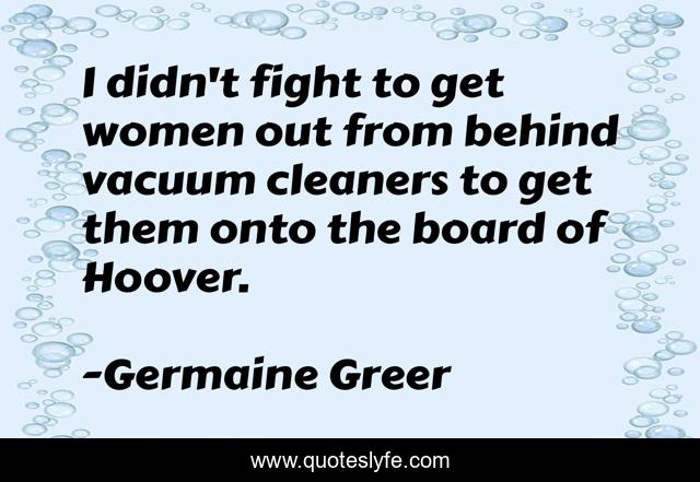 This page presents the quote "I didn't fight to get women out from behind vacuum cleaners to get them onto the board of Hoover.". Author of this quote is Germaine Greer. This quote is about behind, fight, vacuum,.