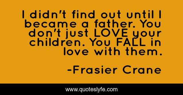This page presents the quote "I didn't find out until I became a father. You don't just LOVE your children. You FALL in love with them.". Author of this quote is Frasier Crane. This quote is about emotion, parenthood, individuality, obligation, affection,.