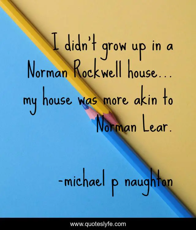 This page presents the quote "I didn't grow up in a Norman Rockwell house... my house was more akin to Norman Lear.". Author of this quote is michael p naughton. This quote is about home, household, comedy, childhood, growing-up,.