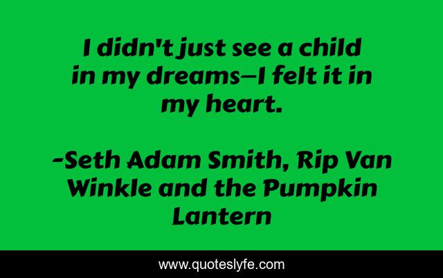 This page presents the quote "I didn't just see a child in my dreams—I felt it in my heart.". Author of this quote is Seth Adam Smith, Rip Van Winkle and the Pumpkin Lantern. This quote is about heart, belonging, love, parents-and-children, parental-love, parenthood, parenting, dreams, children,.