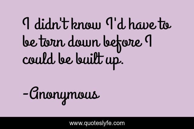 This page presents the quote "I didn't know I'd have to be torn down before I could be built up.". Author of this quote is Anonymous. .