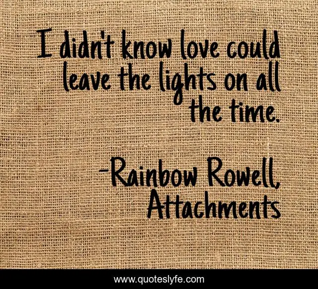 This page presents the quote "I didn't know love could leave the lights on all the time.". Author of this quote is Rainbow Rowell, Attachments. This quote is about love, affection,.