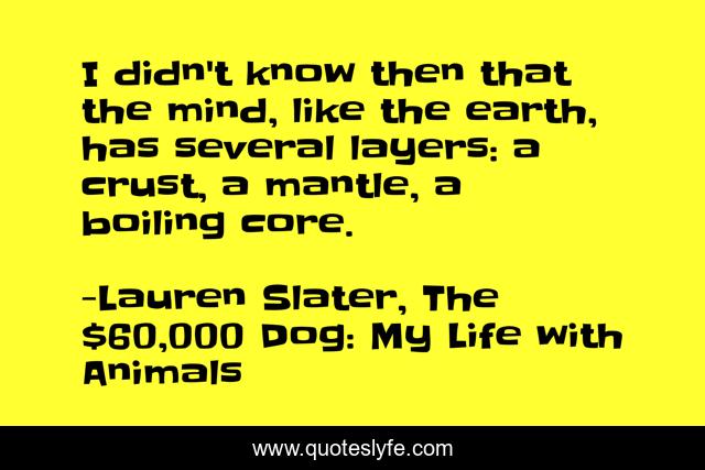 This page presents the quote "I didn't know then that the mind, like the earth, has several layers: a crust, a mantle, a boiling core.". Author of this quote is Lauren Slater, The $60,000 Dog: My Life with Animals. This quote is about identity, fiction,.