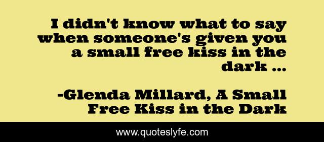 This page presents the quote "I didn't know what to say when someone's given you a small free kiss in the dark ...". Author of this quote is Glenda Millard, A Small Free Kiss in the Dark. This quote is about dark, small, small-free-kiss-in-the-dark, free, kiss,.