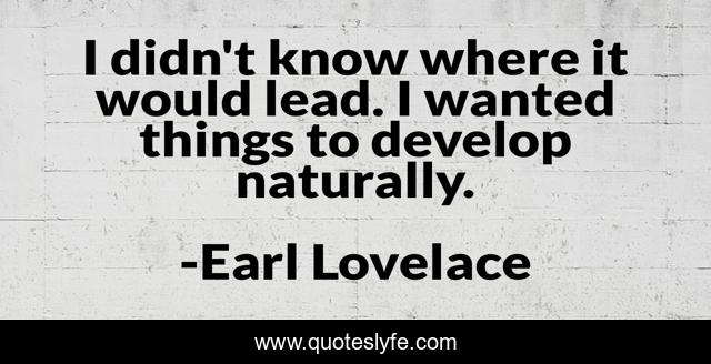 This page presents the quote "I didn't know where it would lead. I wanted things to develop naturally.". Author of this quote is Earl Lovelace. This quote is about love, scared, uncertainty, hurt, unknowing, moving, migration, alone, pain,.