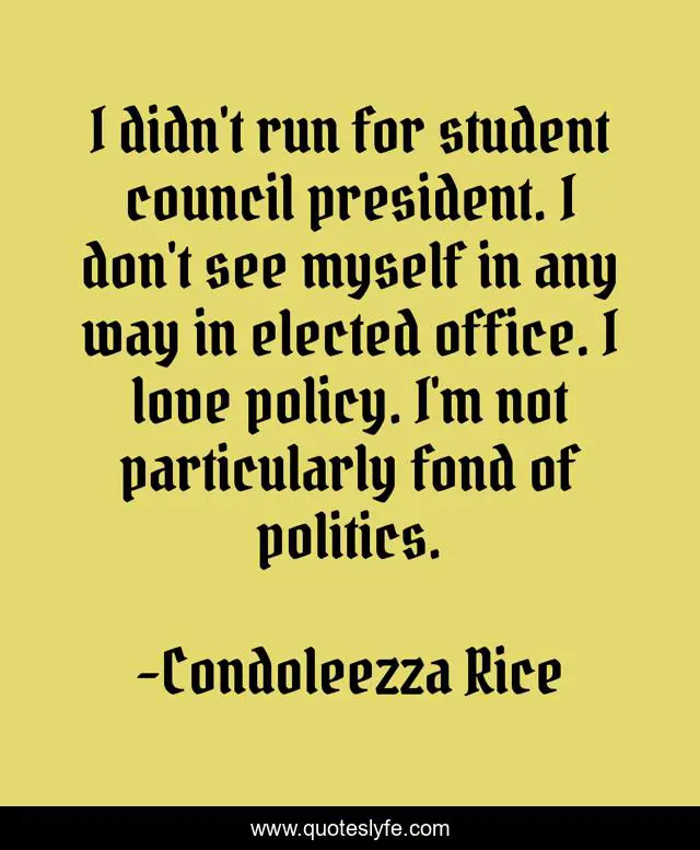"Condoleezza Rice Quotes." Quoteslyfe.com, 2025. Sun. 07 Dec. 2025. <https://www.quoteslyfe.com/quote/I-didn-t-run-for-student-council-318680>.