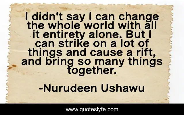"Nurudeen Ushawu Quotes." Quoteslyfe.com, 2025. Sun. 07 Dec. 2025. <https://www.quoteslyfe.com/quote/I-didn-t-say-I-can-change-58247>.