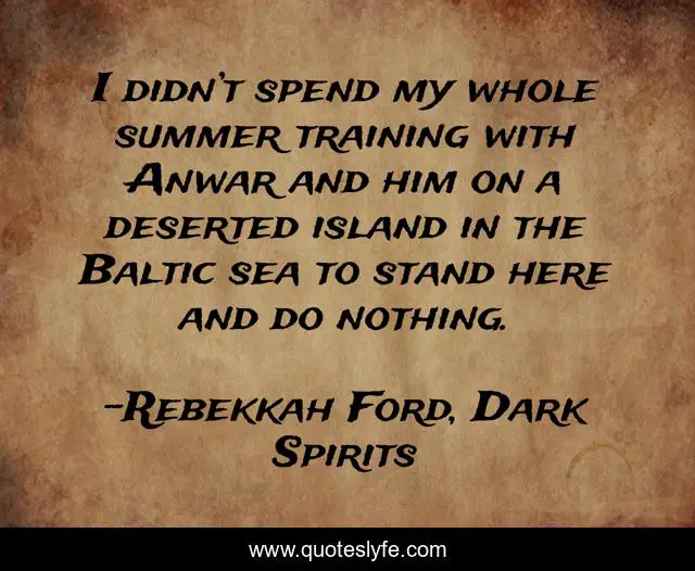 This page presents the quote "I didn’t spend my whole summer training with Anwar and him on a deserted island in the Baltic sea to stand here and do nothing.". Author of this quote is Rebekkah Ford, Dark Spirits. This quote is about young-adult, paranormal-series,.
