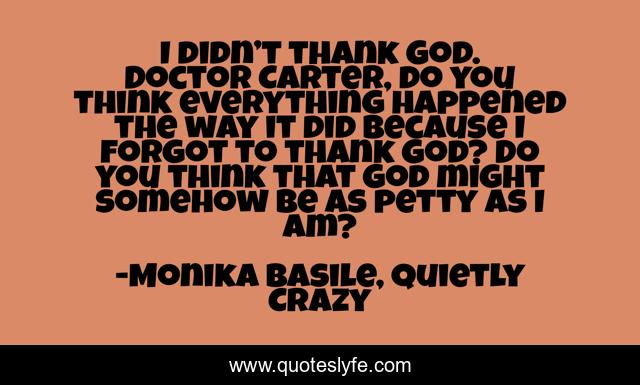 "Monika Basile, Quietly Crazy Quotes." Quoteslyfe.com, 2025. Fri. 05 Dec. 2025. <https://www.quoteslyfe.com/quote/I-didn-t-thank-God-Doctor-Carter-178971>.
