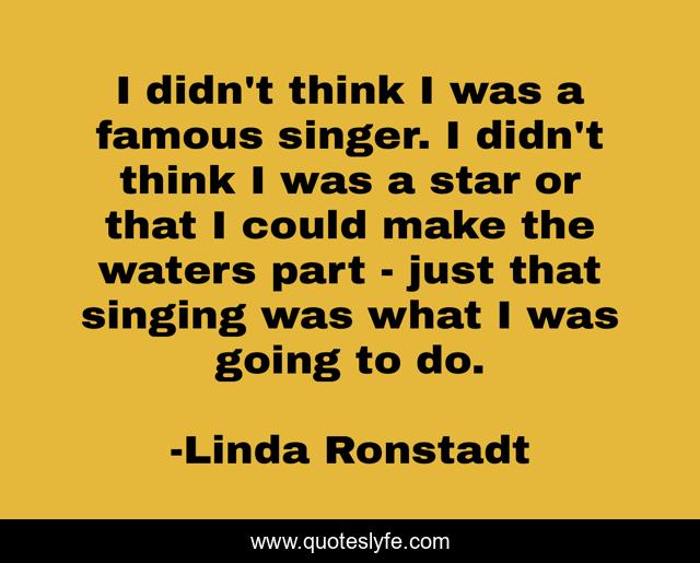 This page presents the quote "I didn't think I was a famous singer. I didn't think I was a star or that I could make the waters part - just that singing was what I was going to do.". Author of this quote is Linda Ronstadt. This quote is about singer, singing, think,.