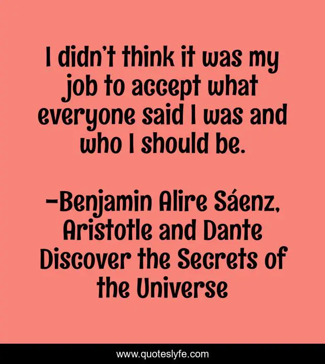 This page presents the quote "I didn’t think it was my job to accept what everyone said I was and who I should be.". Author of this quote is Benjamin Alire Sáenz, Aristotle and Dante Discover the Secrets of the Universe. This quote is about self-awareness, identity,.
