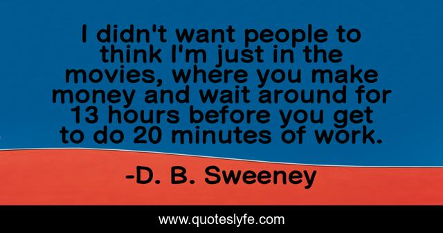 This page presents the quote "I didn't want people to think I'm just in the movies, where you make money and wait around for 13 hours before you get to do 20 minutes of work.". Author of this quote is D. B. Sweeney. This quote is about money, work, people,.