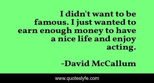 This page presents the quote "I didn't want to be famous. I just wanted to earn enough money to have a nice life and enjoy acting.". Author of this quote is David McCallum. This quote is about enjoy, money, life,.