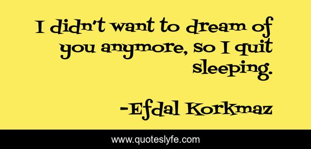 This page presents the quote "I didn’t want to dream of you anymore, so I quit sleeping.". Author of this quote is Efdal Korkmaz. This quote is about dream, sad, love, affection, sleep,.