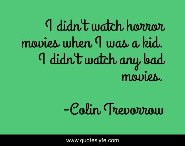 This page presents the quote "I didn't watch horror movies when I was a kid. I didn't watch any bad movies.". Author of this quote is Colin Trevorrow. This quote is about horror, bad, kid,.