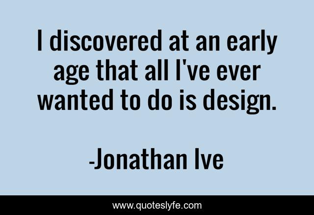 This page presents the quote "I discovered at an early age that all I've ever wanted to do is design.". Author of this quote is Jonathan Ive. This quote is about early, age, wanted,.