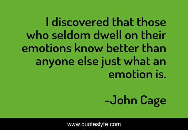 This page presents the quote "I discovered that those who seldom dwell on their emotions know better than anyone else just what an emotion is.". Author of this quote is John Cage. This quote is about emotion, john-cage, zen,.
