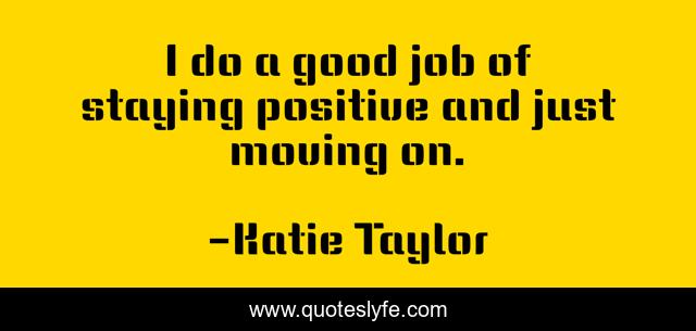 This page presents the quote "I do a good job of staying positive and just moving on.". Author of this quote is Katie Taylor. This quote is about positive, job, good, confidence,.
