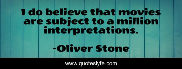 This page presents the quote "I do believe that movies are subject to a million interpretations.". Author of this quote is Oliver Stone. This quote is about interpretations, believe,.