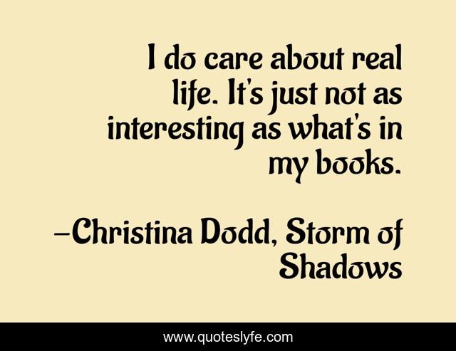 This page presents the quote "I do care about real life. It's just not as interesting as what's in my books.". Author of this quote is Christina Dodd, Storm of Shadows. .