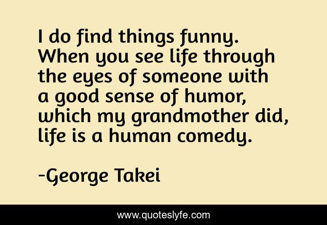 This page presents the quote "I do find things funny. When you see life through the eyes of someone with a good sense of humor, which my grandmother did, life is a human comedy.". Author of this quote is George Takei. This quote is about funny, life, good, comedy,.
