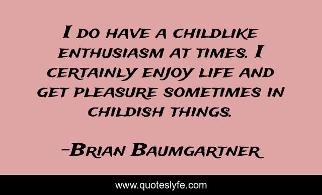 This page presents the quote "I do have a childlike enthusiasm at times. I certainly enjoy life and get pleasure sometimes in childish things.". Author of this quote is Brian Baumgartner. This quote is about enjoy, enjoy life,.