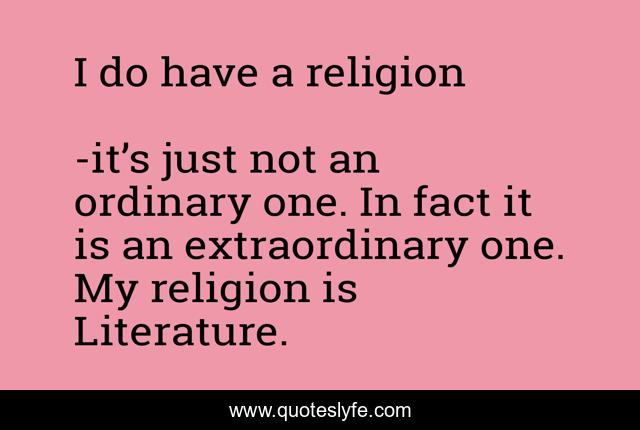 "it’s just not an ordinary one. In fact it is an extraordinary one. My religion is Literature. Quotes." Quoteslyfe.com, 2025. Sat. 06 Dec. 2025. <https://www.quoteslyfe.com/quote/I-do-have-a-religion-111973>.