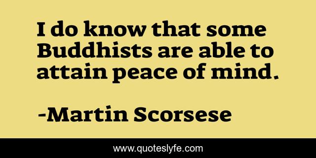 This page presents the quote "I do know that some Buddhists are able to attain peace of mind.". Author of this quote is Martin Scorsese. This quote is about mind, peace of mind,.