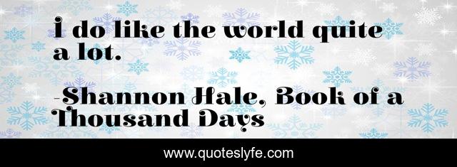 "Shannon Hale, Book of a Thousand Days Quotes." Quoteslyfe.com, 2025. Mon. 08 Dec. 2025. <https://www.quoteslyfe.com/quote/I-do-like-the-world-quite-a-4723>.
