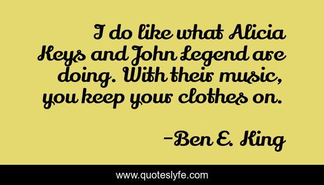 This page presents the quote "I do like what Alicia Keys and John Legend are doing. With their music, you keep your clothes on.". Author of this quote is Ben E. King. This quote is about legend, clothes,.