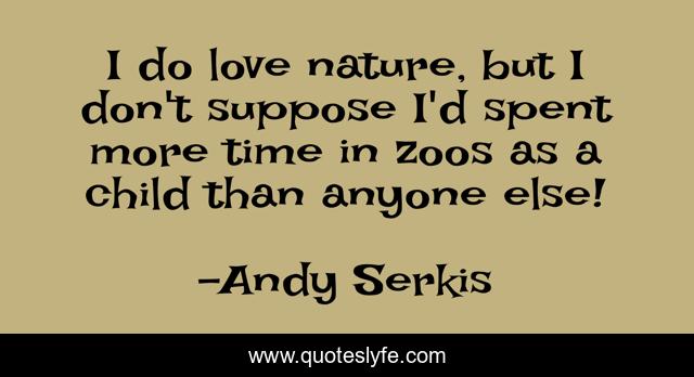 This page presents the quote "I do love nature, but I don't suppose I'd spent more time in zoos as a child than anyone else!". Author of this quote is Andy Serkis. This quote is about time, love, affection, child,.