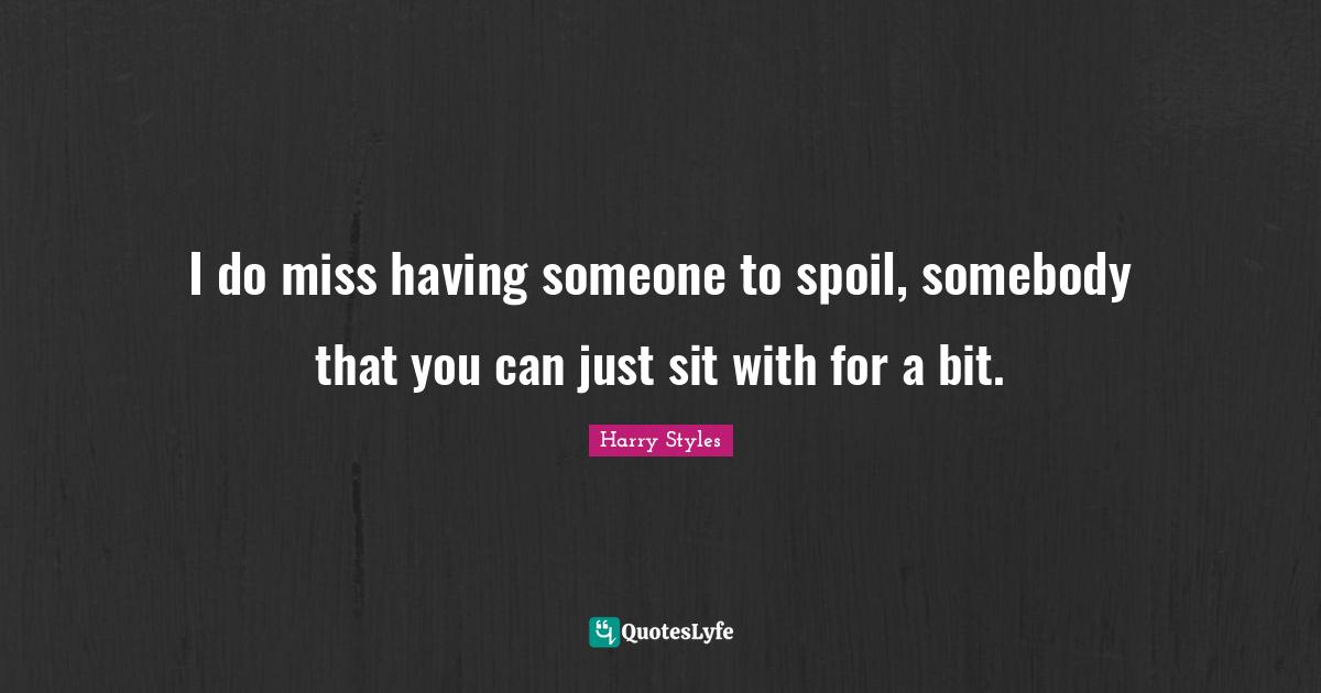 This page presents the quote "I do miss having someone to spoil, somebody that you can just sit with for a bit.". Author of this quote is Harry Styles. This quote is about bits, missing, spoil,.