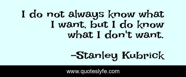 This page presents the quote "I do not always know what I want, but I do know what I don't want.". Author of this quote is Stanley Kubrick. This quote is about director, stanley-kubrick, film, wanting,.