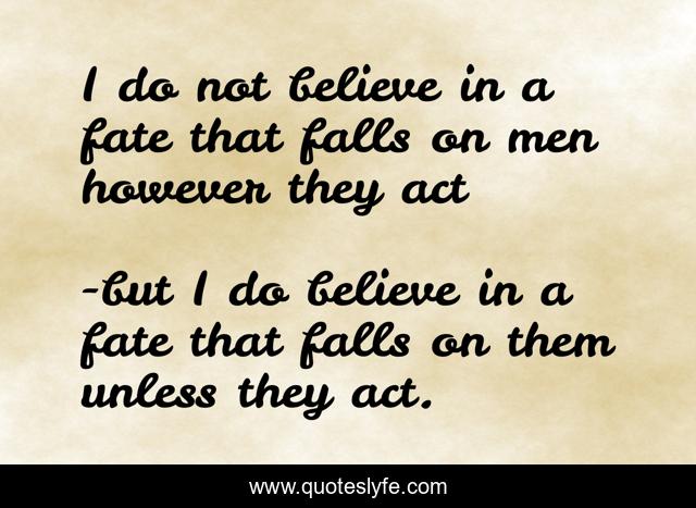 "but I do believe in a fate that falls on them unless they act. Quotes." Quoteslyfe.com, 2025. Sun. 07 Dec. 2025. <https://www.quoteslyfe.com/quote/I-do-not-believe-in-a-fate-153641>.
