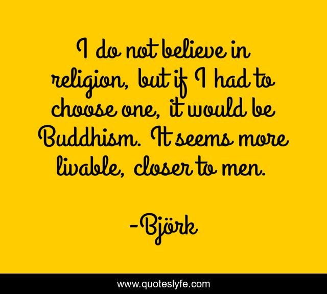 This page presents the quote "I do not believe in religion, but if I had to choose one, it would be Buddhism. It seems more livable, closer to men.". Author of this quote is Björk. This quote is about atheism, atheist, buddhism, buddhist, belief,.