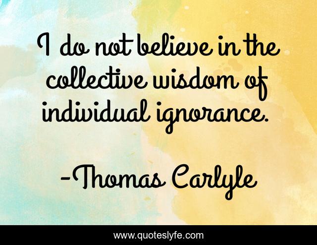 This page presents the quote "I do not believe in the collective wisdom of individual ignorance.". Author of this quote is Thomas Carlyle. This quote is about ignorance, belief, democracy, wisdom,.