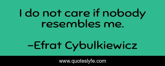 This page presents the quote "I do not care if nobody resembles me.". Author of this quote is Efrat Cybulkiewicz. This quote is about self-love, self-respect, self-confidence, self-strength, self-realization, self-improvement, self-motivation, self-awareness, self-esteem,.