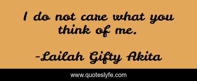 This page presents the quote "I do not care what you think of me.". Author of this quote is Lailah Gifty Akita. This quote is about opinions-of-others, wise-words, opinions-lailah-gifty-akita,.