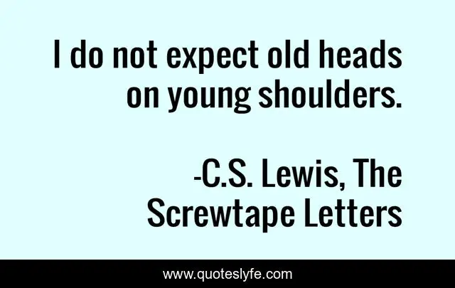 "C.S. Lewis, The Screwtape Letters Quotes." Quoteslyfe.com, 2025. Sat. 06 Dec. 2025. <https://www.quoteslyfe.com/quote/I-do-not-expect-old-heads-on-13109>.