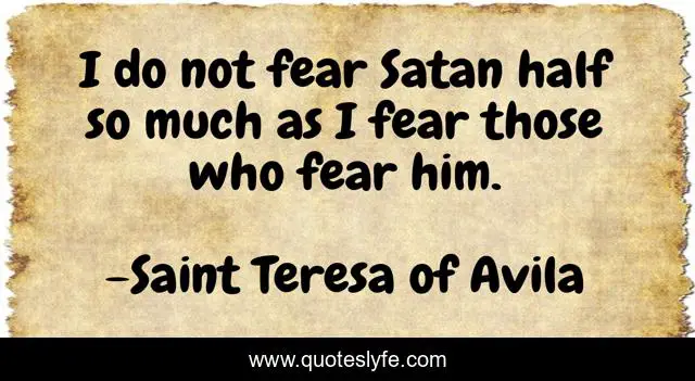 "Saint Teresa of Avila Quotes." Quoteslyfe.com, 2025. Fri. 05 Dec. 2025. <https://www.quoteslyfe.com/quote/I-do-not-fear-Satan-half-so-308063>.