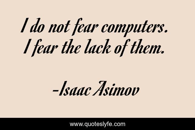 This page presents the quote "I do not fear computers. I fear the lack of them.". Author of this quote is Isaac Asimov. This quote is about fear, lack, them,.
