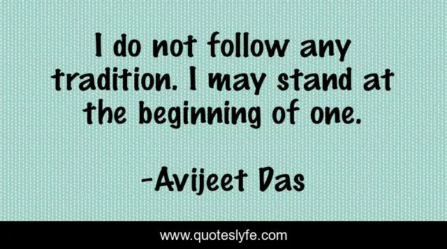 "Avijeet Das Quotes." Quoteslyfe.com, 2025. Fri. 05 Dec. 2025. <https://www.quoteslyfe.com/quote/I-do-not-follow-any-tradition-I-57683>.
