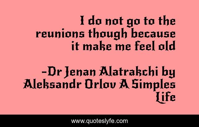 This page presents the quote "I do not go to the reunions though because it make me feel old". Author of this quote is Dr Jenan Alatrakchi by Aleksandr Orlov A Simples Life. This quote is about life-and-living, friends,.