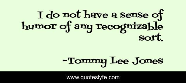 This page presents the quote "I do not have a sense of humor of any recognizable sort.". Author of this quote is Tommy Lee Jones. This quote is about sense of humor, sense,.