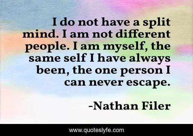This page presents the quote "I do not have a split mind. I am not different people. I am myself, the same self I have always been, the one person I can never escape.". Author of this quote is Nathan Filer. .