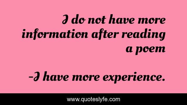 This page presents the quote "I do not have more information after reading a poem". Author of this quote is I have more experience.. This quote is about holy luck, eugene h. peterson,.
